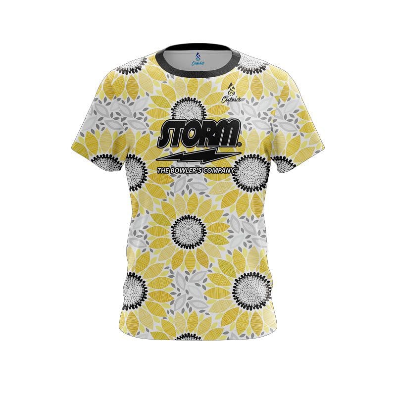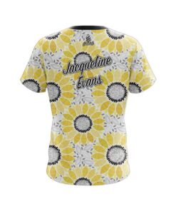 Designed, cut and sewn by hand stay 40% cooler with CoolWick. Our Jacqueline Evans Storm Sunflowers Replica CoolWick Bowling Jerseys are made of two different fabrics with the back being our CoolWick technology fabric that helps wick moisture away and helps air flow more easily through the fibers.
