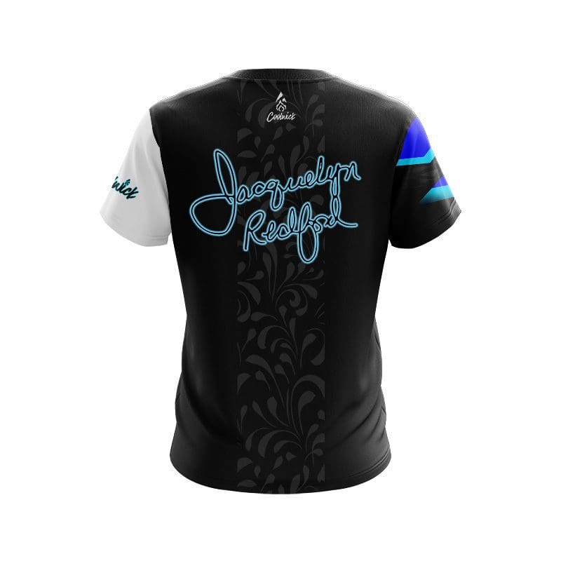 Stay 40% cooler with CoolWick. Our Jacquelyn Redford Teal Sport CoolWick Bowling Jerseys are made of two different fabrics with the back being our CoolWick technology fabric that helps wick moisture away and helps air flow more easily through the fibers.