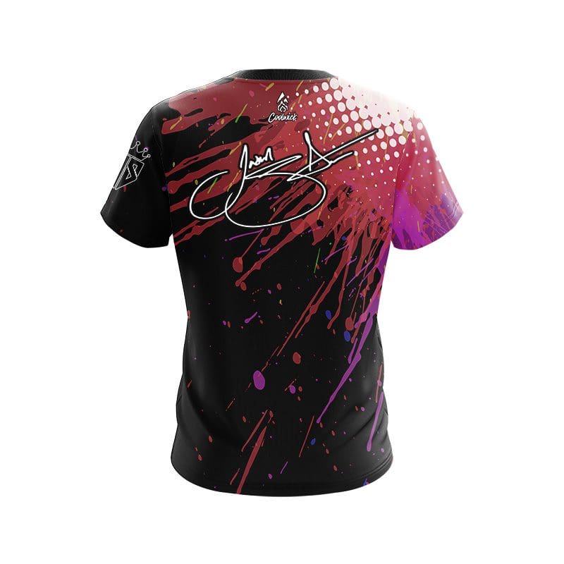 Designed, cut and sewn by hand stay 40% cooler with CoolWick. Our Jason Sterner Paintwave Replica CoolWick Bowling Jerseys are made of two different fabrics. The back being our CoolWick technology fabric that helps wick moisture away and helps air flow more easily through the fibers.