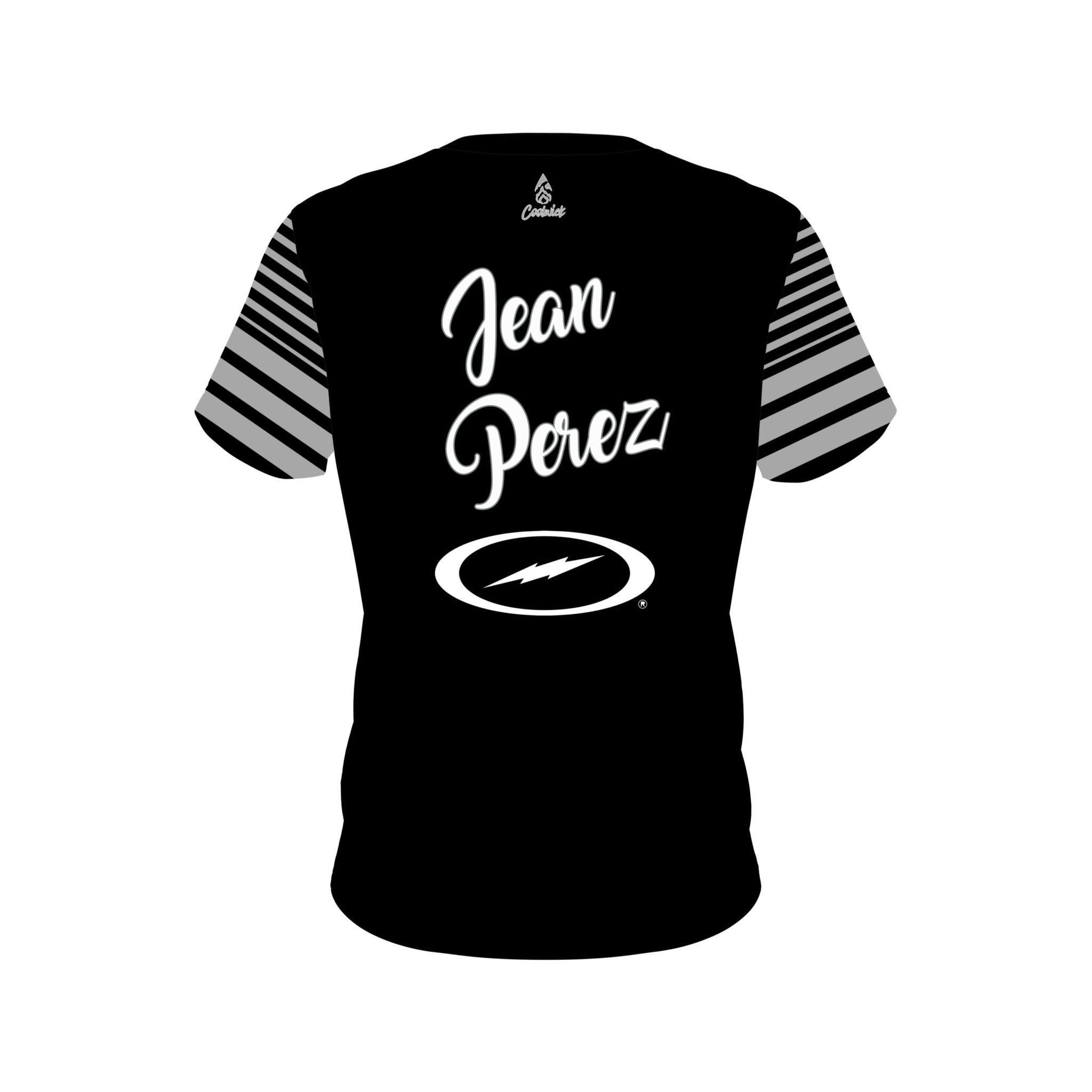 Stay 40% cooler with CoolWick. Our Jean Perez Black and Gray Replica CoolWick Bowling Jerseys are made of two different fabrics with the back being our CoolWick technology fabric that helps wick moisture away and helps air flow more easily through the fibers.