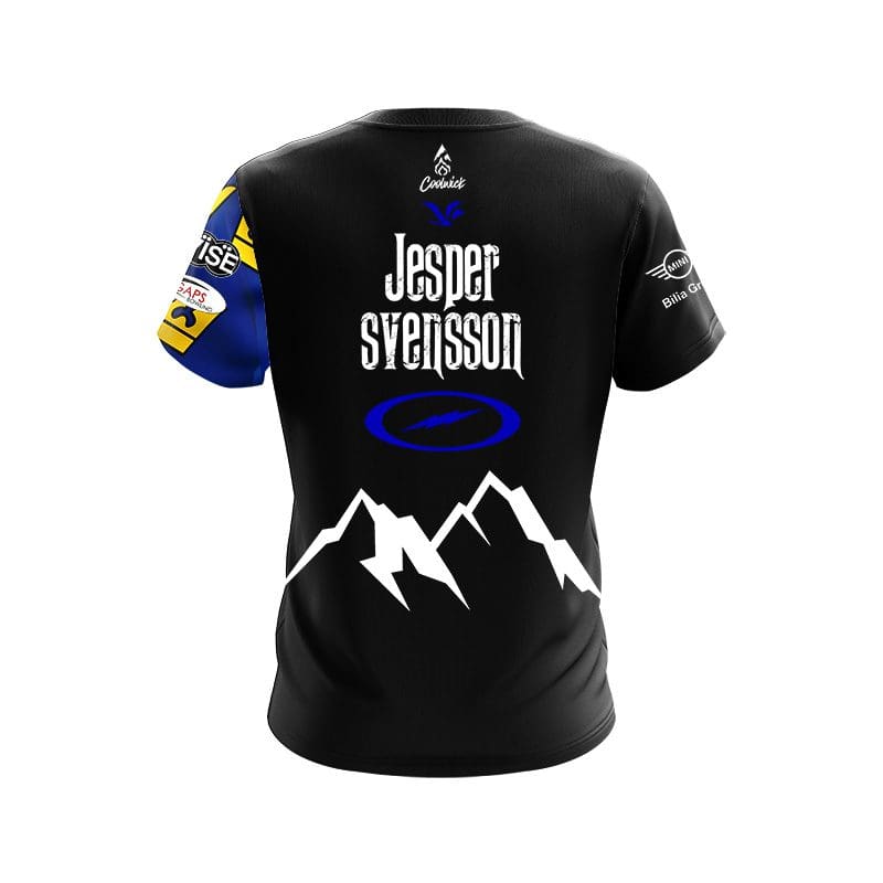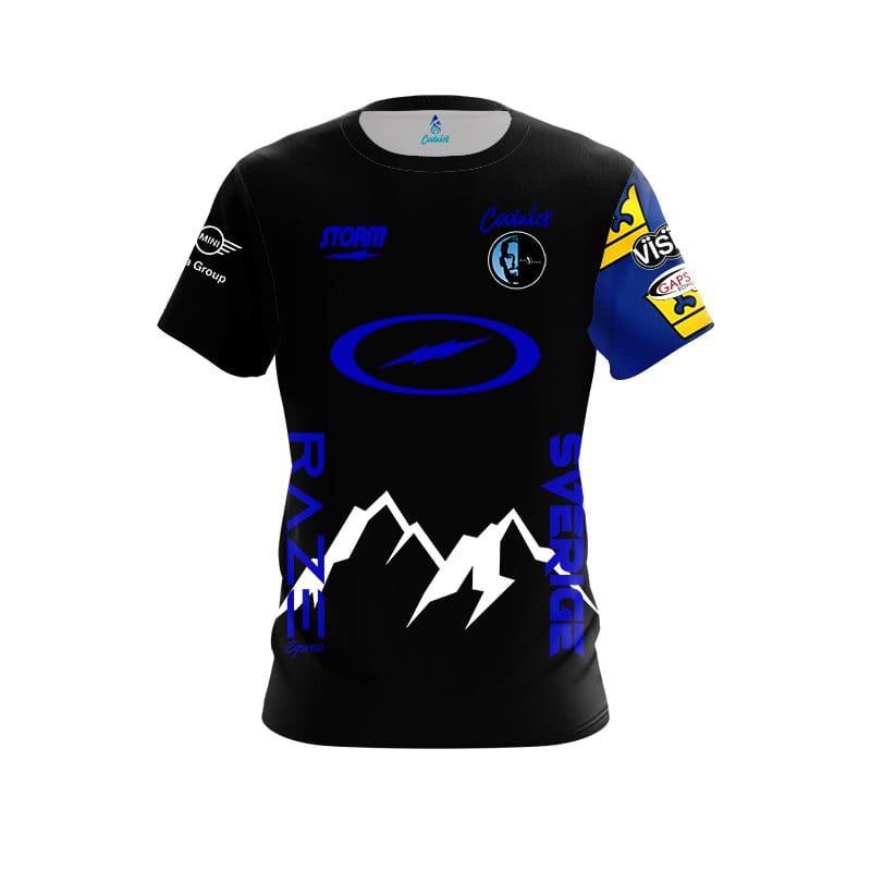 Designed, cut and sewn by hand stay 40% cooler with CoolWick. Our Jesper Svensson Black Blue ICE Replica CoolWick Bowling Jerseys are made of two different fabrics with the back being our CoolWick technology fabric that helps wick moisture away and helps air flow more easily through the fibers.