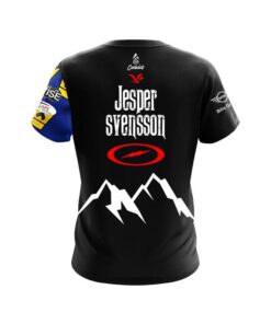 Designed, cut and sewn by hand stay 40% cooler with CoolWick. Our Jesper Svensson Black Red ICE Replica CoolWick Bowling Jerseys are made of two different fabrics with the back being our CoolWick technology fabric that helps wick moisture away and helps air flow more easily through the fibers.