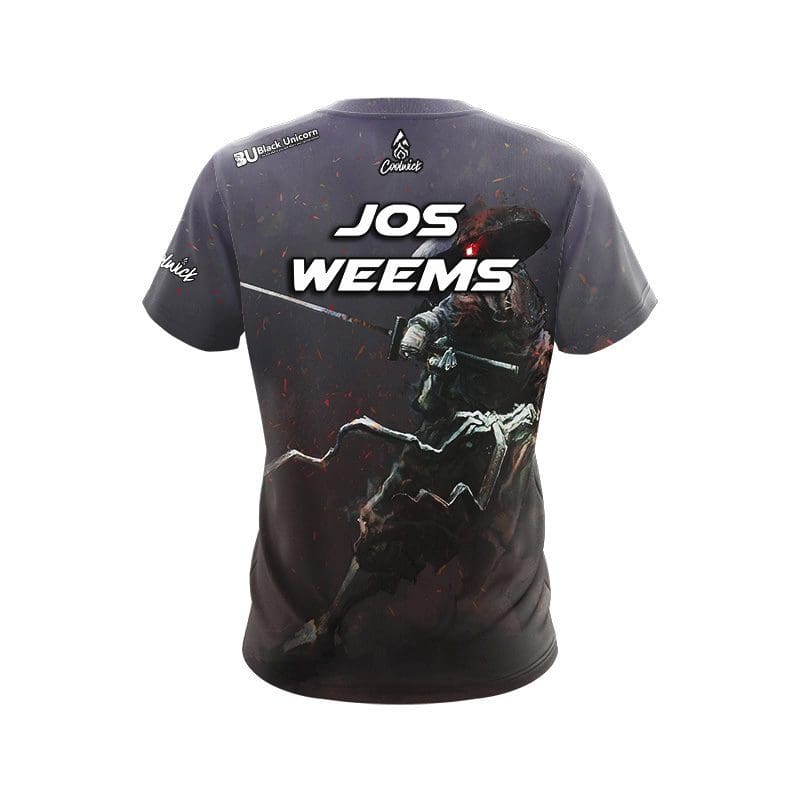Designed, cut and sewn by hand stay 40% cooler with CoolWick. Our Jos Weems Black Unicorn Cyber Samurai CoolWick Bowling Jerseys are made of two different fabrics. The back being our CoolWick technology fabric that helps wick moisture away and helps air flow more easily through the fibers.