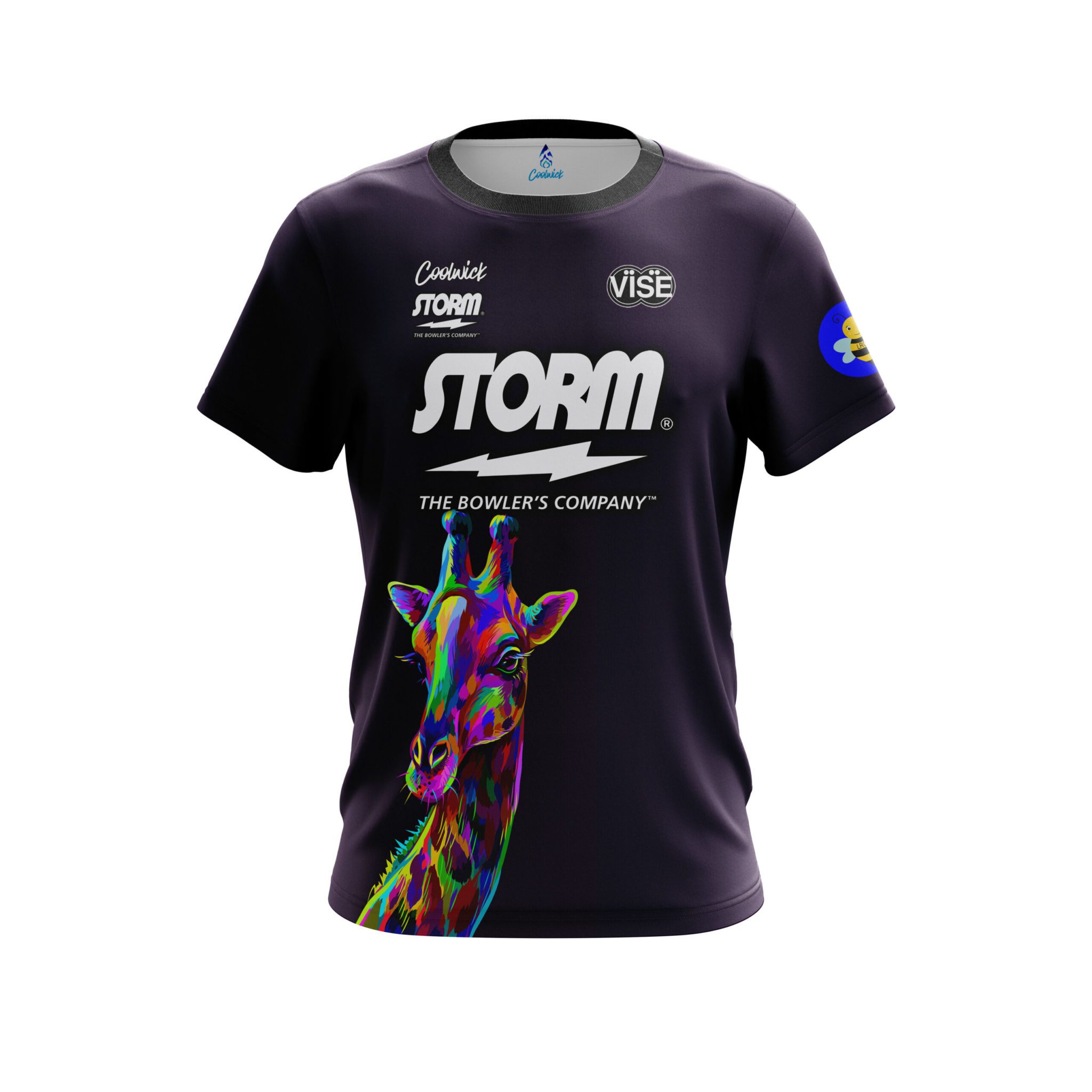 Designed, cut and sewn by hand stay 40% cooler with CoolWick. Our Josie Barnes Colorful Giraffe Replica CoolWick Bowling Jerseys are made of two different fabrics with the back being our CoolWick technology fabric that helps wick moisture away and helps air flow more easily through the fibers.