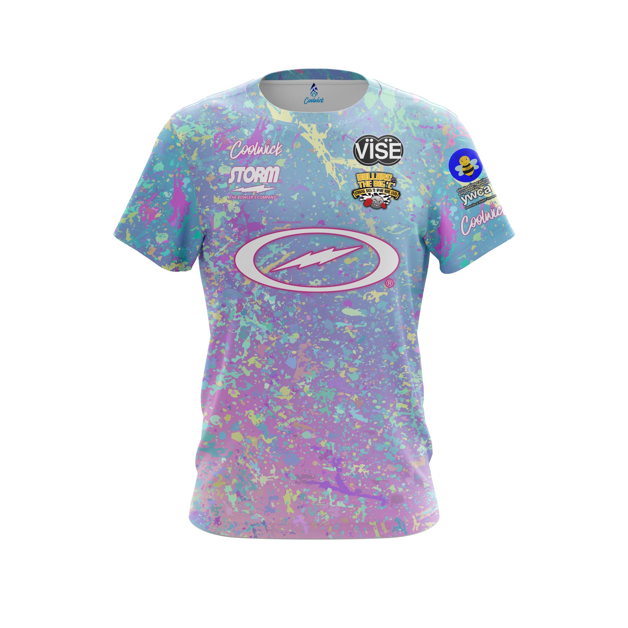 Designed, cut and sewn by hand stay 40% cooler with CoolWick. Our Josie Barnes Teal Pink Glitter Replica CoolWick Bowling Jerseys are made of two different fabrics. The back being our CoolWick technology fabric that helps wick moisture away and helps air flow more easily through the fibers.