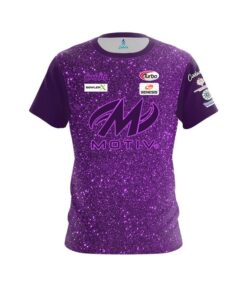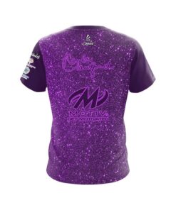 Designed, cut and sewn by hand stay 40% cooler with CoolWick. Our Kayla Crawford Purple Glitter CoolWick Bowling Jerseys are made of two different fabrics. The back being our CoolWick technology fabric that helps wick moisture away and helps air flow more easily through the fibers.