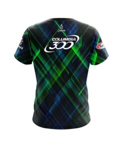 Designed, cut and sewn by hand stay 40% cooler with CoolWick. Our Kenny Ryan Blue and Green Abstract CoolWick Bowling Jerseys are made of two different fabrics. The back being our CoolWick technology fabric that helps wick moisture away and helps air flow more easily through the fibers.