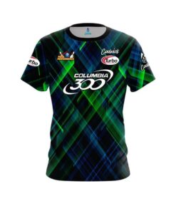 Designed, cut and sewn by hand stay 40% cooler with CoolWick. Our Kenny Ryan Blue and Green Abstract CoolWick Bowling Jerseys are made of two different fabrics. The back being our CoolWick technology fabric that helps wick moisture away and helps air flow more easily through the fibers.