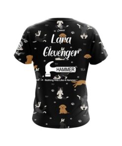 Stay 40% cooler with CoolWick. Our Lara Clevenger Dogs CoolWick Bowling Jerseys are made of two different fabrics with the back being our CoolWick technology fabric that helps wick moisture away and helps air flow more easily through the fibers.