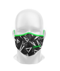 Stay 40% cooler with CoolWick. Our Lime Grunge dye sublimated masks are two-ply and 100% polyester that covers the wearer’s nose and mouth. Our masks are made of fabric that helps wick moisture away and helps air flow more easily through the fibers. The fabric binding has a slight stretch, while ear loops and a center seam help hold it comfortably in place all day.