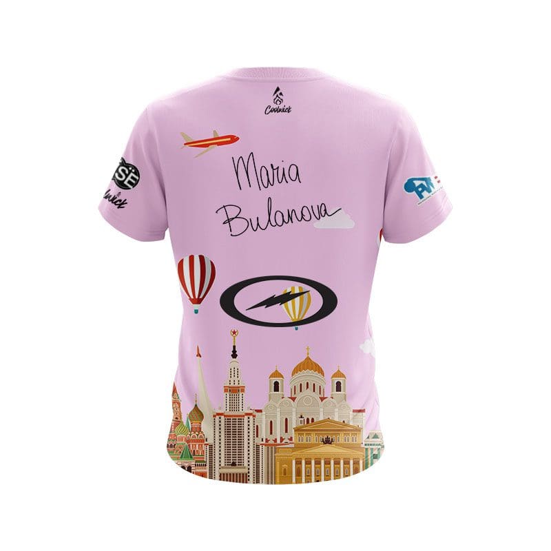 Designed, cut and sewn by hand stay 40% cooler with CoolWick. Our Maria Bulanova Russia Replica CoolWick Bowling Jersey are made of two different fabrics with the back being our CoolWick technology fabric that helps wick moisture away and helps air flow more easily through the fibers.