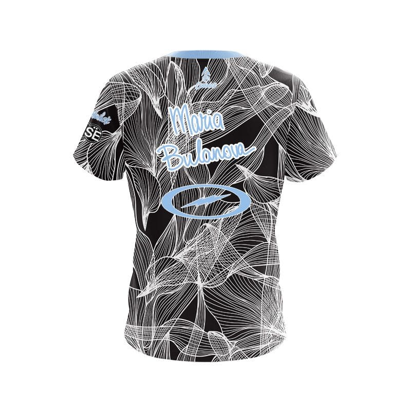 Designed, cut and sewn by hand stay 40% cooler with CoolWick. Our Maria Bulanova Teal Floral Replica CoolWick Bowling Jerseys are made of two different fabrics. The back being our CoolWick technology fabric that helps wick moisture away and helps air flow more easily through the fibers.