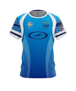 Designed, cut and sewn by hand stay 40% cooler with CoolWick. Our Martin Larsen Blue Replica CoolWick Bowling Jerseys are made of two different fabrics. The back being our CoolWick technology fabric that helps wick moisture away and helps air flow more easily through the fibers.