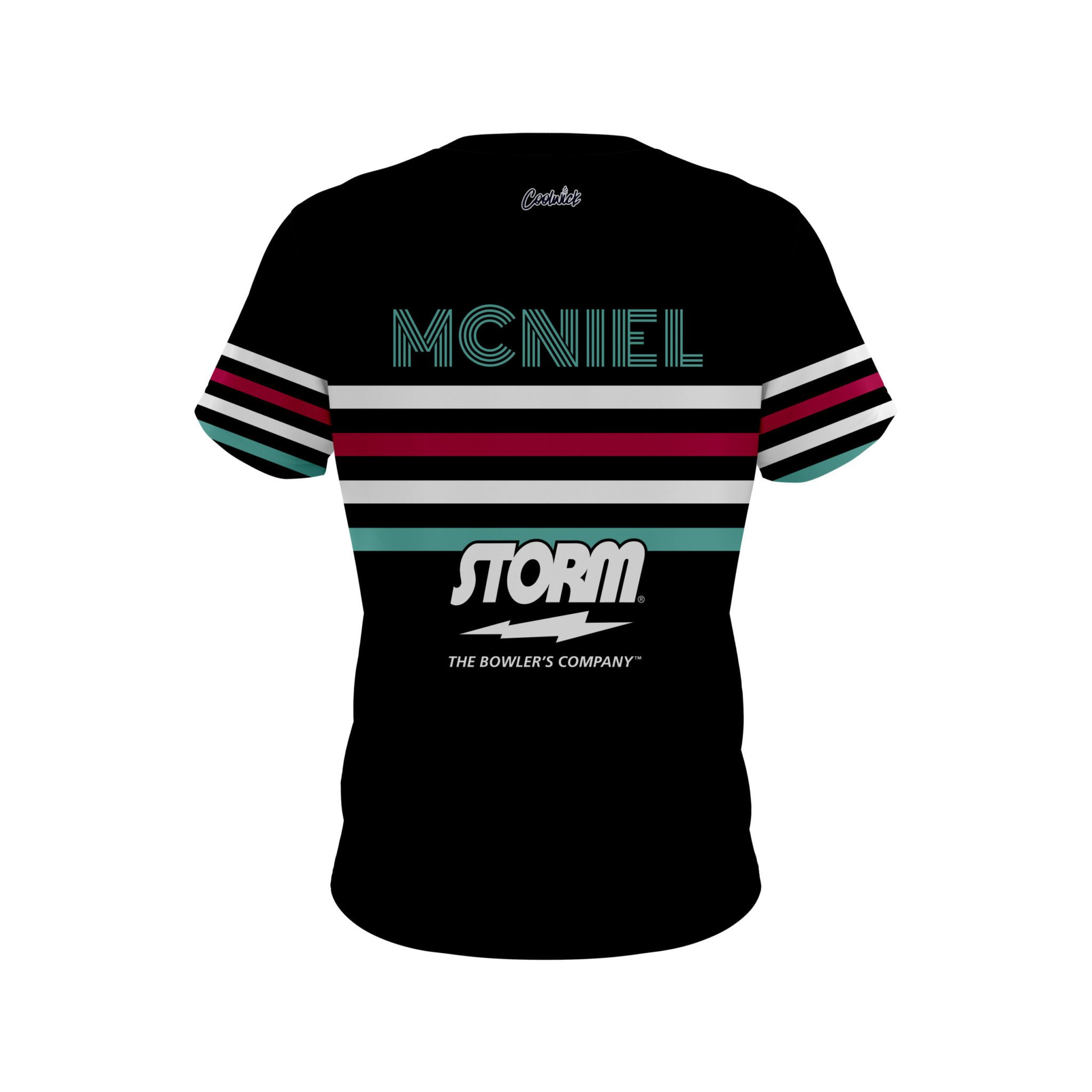 Designed, cut and sewn by hand stay 40% cooler with CoolWick. Our Matt McNiel Day Black Stripes CoolWick Bowling Jerseys are made of two different fabrics with the back being our CoolWick technology fabric that helps wick moisture away and helps air flow more easily through the fibers.