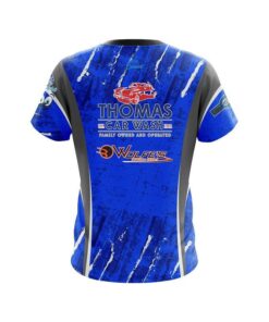 Designed, cut and sewn by hand stay 40% cooler with CoolWick. Our Matt Ogle DV8 Blue Grunge Replica CoolWick Bowling Jerseys are made of two different fabrics with the back being our CoolWick technology fabric that helps wick moisture away and helps air flow more easily through the fibers.