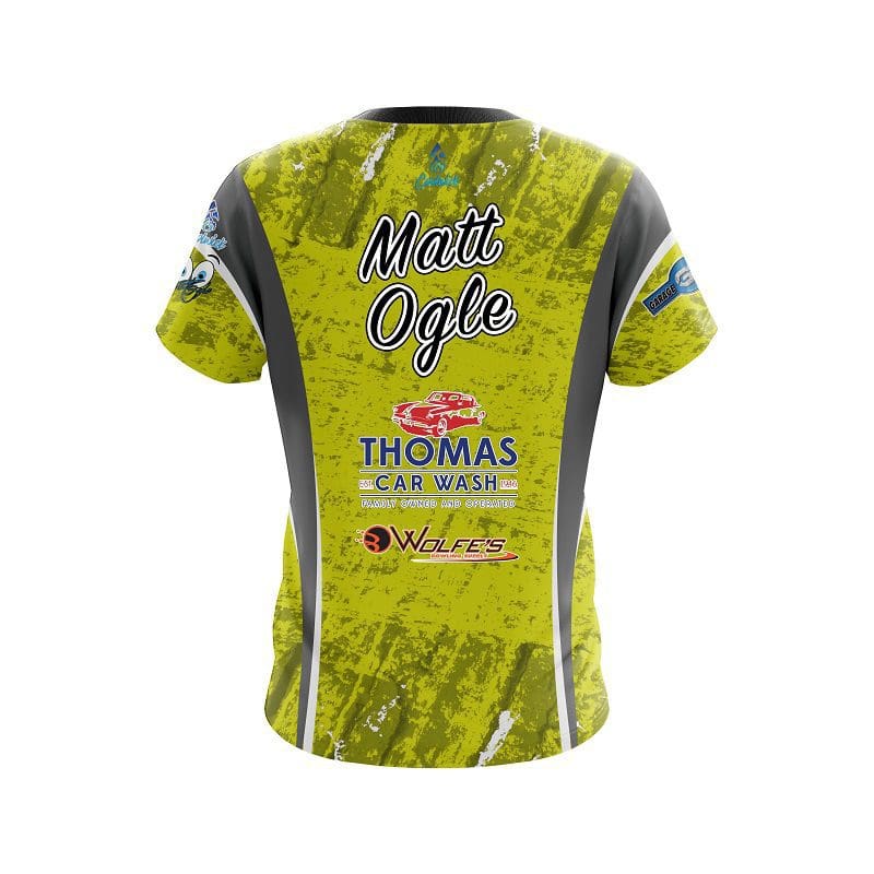 Designed, cut and sewn by hand stay 40% cooler with CoolWick. Our Matt Ogle DV8 Yellow Grunge Replica CoolWick Bowling Jerseys are made of two different fabrics with the back being our CoolWick technology fabric that helps wick moisture away and helps air flow more easily through the fibers.