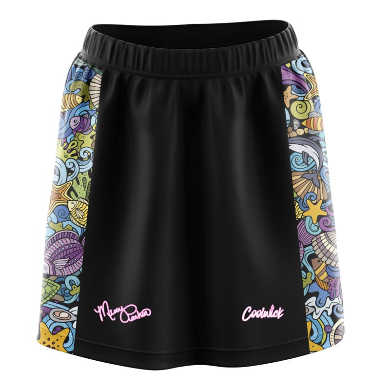 Gear up for a remarkable experience of performance, comfort, and style all rolled into one! Introducing the breathtaking Missy Parkin Ocean Fun CoolWick Bowling Skort – meticulously crafted with the latest and greatest custom design by CoolWick Staffer, Missy Parkin!