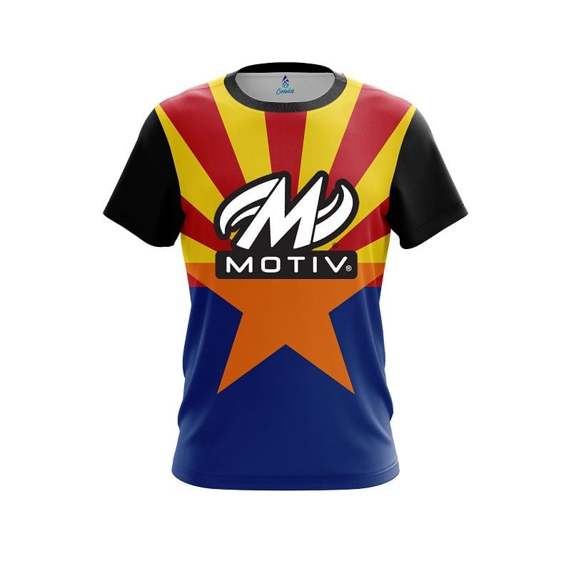 Stay 40% cooler with CoolWick. Our Motiv Arizona Flag CoolWick Bowling Jersey are made of two different fabrics with the back being our CoolWick technology fabric that helps wick moisture away and helps air flow more easily through the fibers.