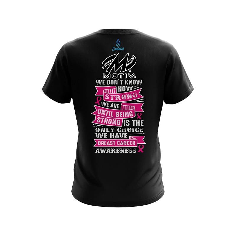 Stay 40% cooler with CoolWick. Our Motiv Breast Cancer Strength CoolWick Bowling Jerseys are made of two different fabrics with the back being our CoolWick technology fabric that helps wick moisture away and helps air flow more easily through the fibers.