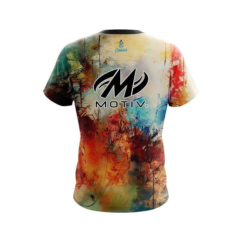 Stay 40% cooler with CoolWick. Our Motiv Colorful Painted Canvas Grunge CoolWick Bowling Jerseys are made of two different fabrics with the back being our CoolWick technology fabric that helps wick moisture away and helps air flow more easily through the fibers.