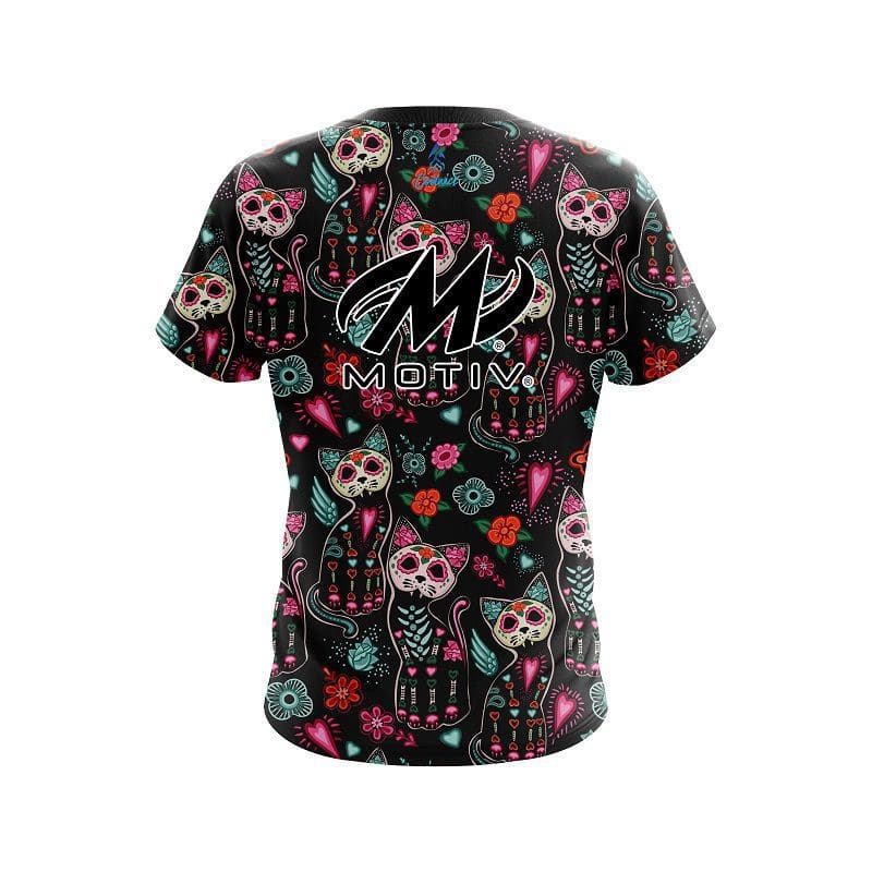 Stay 40% cooler with CoolWick. Our Motiv Day Of The Dead Cats CoolWick Bowling Jerseys are made of two different fabrics with the back being our CoolWick technology fabric that helps wick moisture away and helps air flow more easily through the fibers.