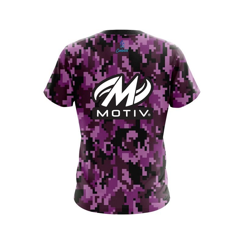 Stay 40% cooler with CoolWick. Our Motiv Digital Camo Purple CoolWick Bowling Jersey are made of two different fabrics with the back being our CoolWick technology fabric that helps wick moisture away and helps air flow more easily through the fibers.