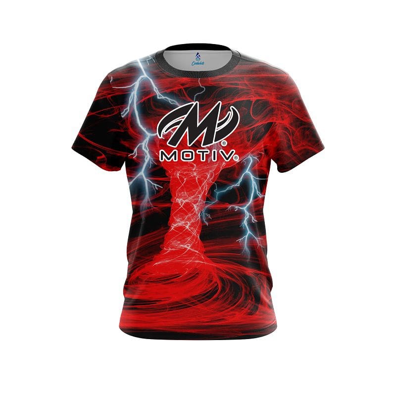 Stay 40% cooler with CoolWick. Our Motiv Electrical Tornado Red CoolWick Bowling Jerseys are made of two different fabrics with the back being our CoolWick technology fabric that helps wick moisture away and helps air flow more easily through the fibers.