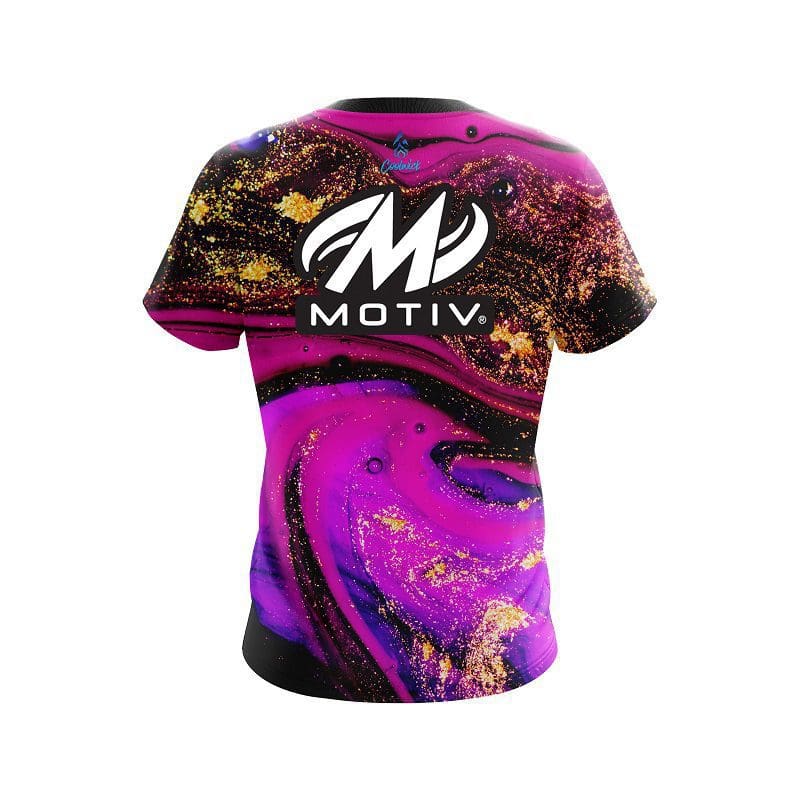 Discover the ultimate blend of style, comfort, and functionality with our Motiv Magenta Gold Liquid Marble CoolWick Bowling Jersey. Expertly crafted by our experienced designers, these jerseys feature cutting-edge dye-sublimation technology and state-of-the-art wicking fabric to keep you cool and dry. Stand out on the lanes with captivating designs that catch everyone’s eye.