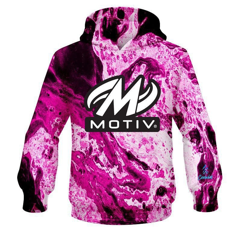 Designed, cut and sewn by hand, our Motiv Marble Pink CoolWick Bowling Hoodies are made to keep you warm and comfy with HD graphics and eye-catching style.
