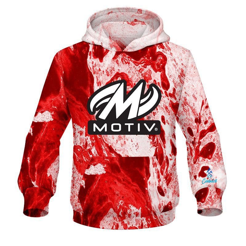 Designed, cut and sewn by hand, our Motiv Marble Red CoolWick Bowling Hoodies are made to keep you warm and comfy with HD graphics and eye-catching style.