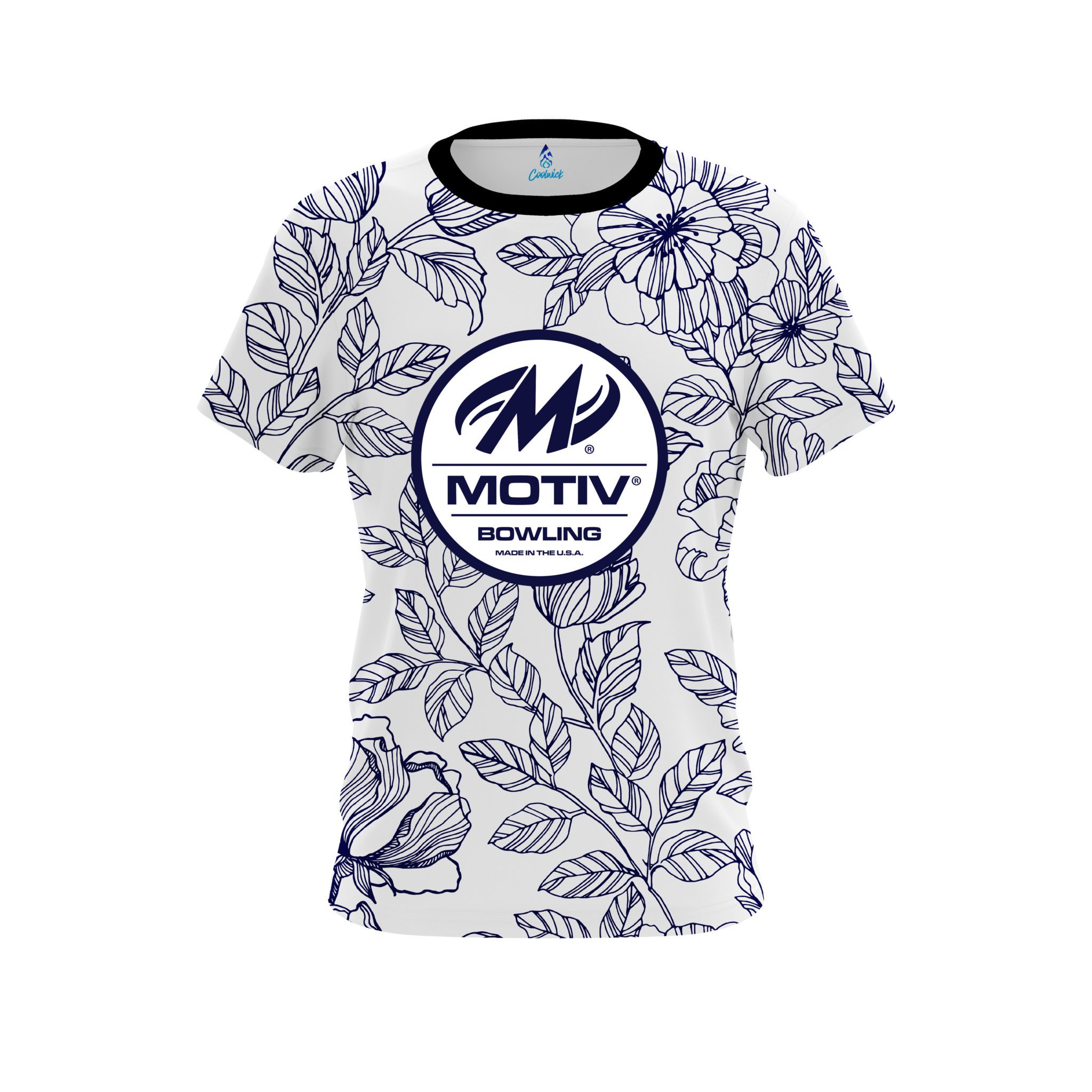 Stay 40% cooler with CoolWick. Our Motiv Navy Flower Tattoo CoolWick Bowling Jerseys are made of two different fabrics with the back being our CoolWick technology fabric that helps wick moisture away and helps air flow more easily through the fibers.