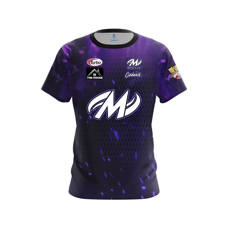 Gear up for a remarkable experience of performance, comfort, and style all rolled into one! Introducing the breathtaking Motiv Nick Pate Purple Honeycomb Sparks CoolWick Bowling Jersey – meticulously crafted with the latest custom design by CoolWick Staffer and Professional Bowler, Nick Pate.