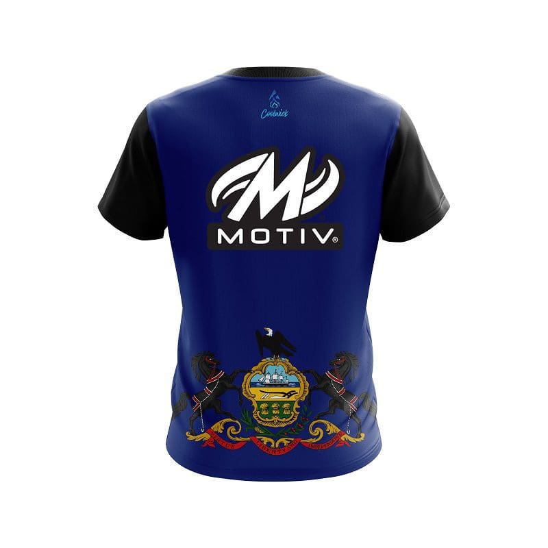Stay 40% cooler with CoolWick. Our Motiv Pennsylvania Flag CoolWick Bowling Jersey are made of two different fabrics with the back being our CoolWick technology fabric that helps wick moisture away and helps air flow more easily through the fibers.