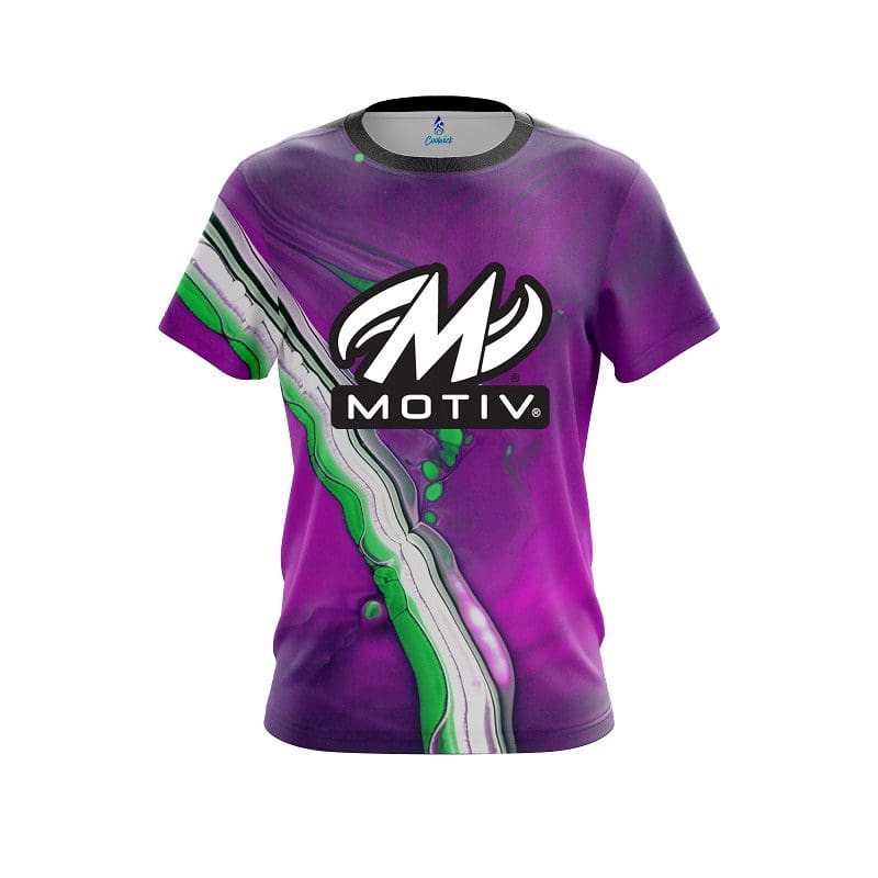 Stay 40% cooler with CoolWick. Our Motiv Purple And Green Liquid CoolWick Bowling Jerseys are made of two different fabrics with the back being our CoolWick technology fabric that helps wick moisture away and helps air flow more easily through the fibers.