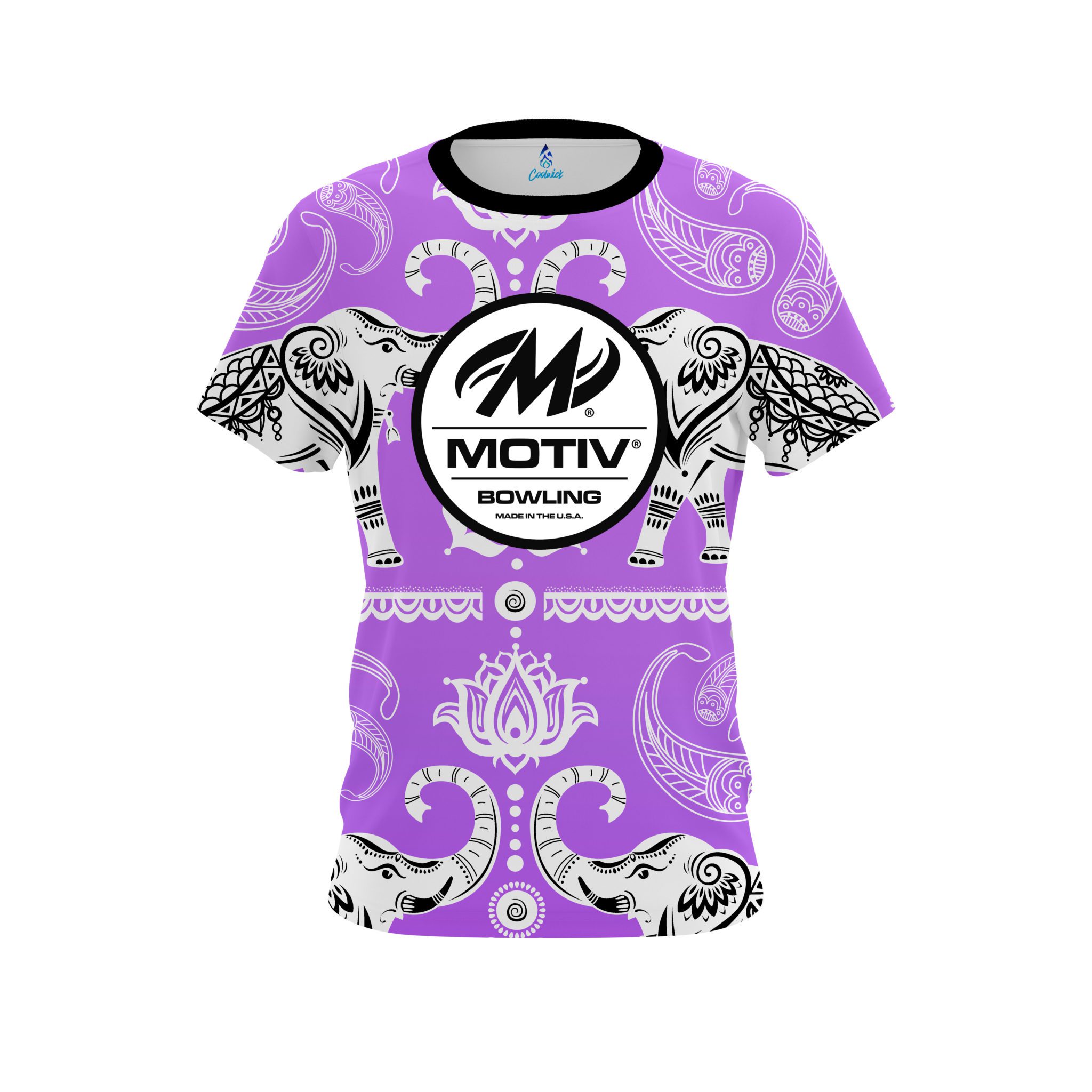 Stay 40% cooler with CoolWick. Our Motiv Tribal Elephants Purple CoolWick Bowling Jersey are made of two different fabrics with the back being our CoolWick technology fabric that helps wick moisture away and helps air flow more easily through the fibers.