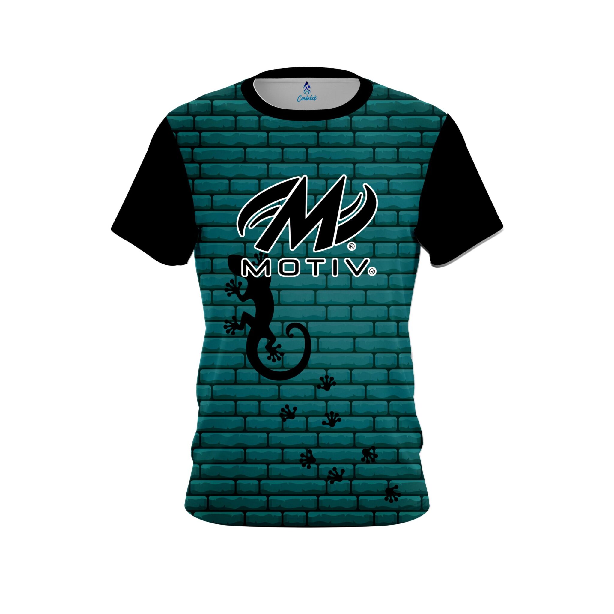 Stay 40% cooler with CoolWick. Our Motiv Turq Bricks Gecko CoolWick Bowling Jerseys are made of two different fabrics with the back being our CoolWick technology fabric that helps wick moisture away and helps air flow more easily through the fibers.