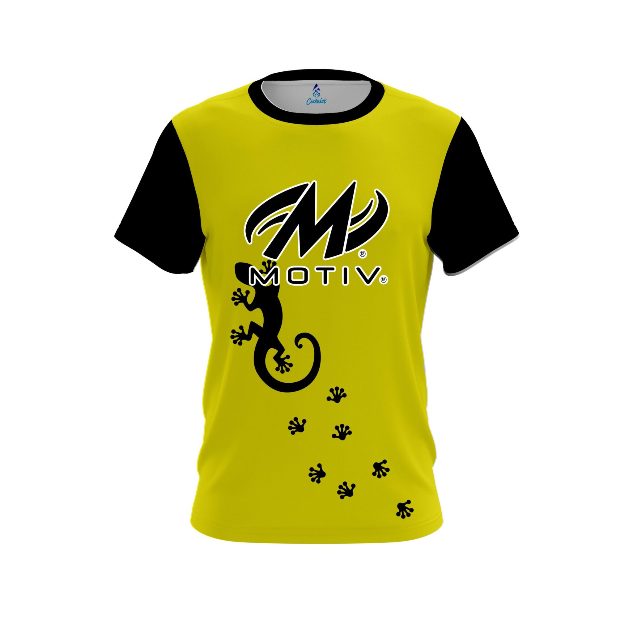 Stay 40% cooler with CoolWick. Our Motiv Yellow Gecko CoolWick Bowling Jerseys are made of two different fabrics with the back being our CoolWick technology fabric that helps wick moisture away and helps air flow more easily through the fibers.