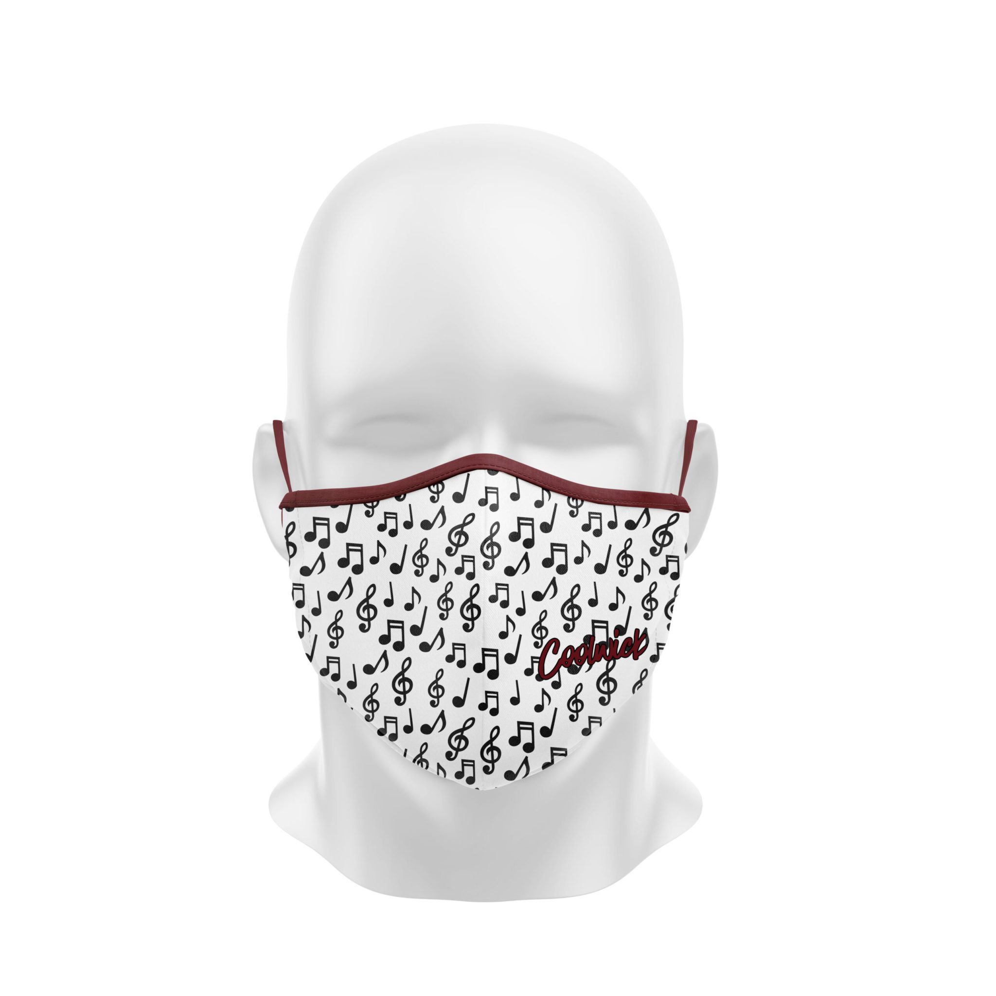 Stay 40% cooler with CoolWick. Our Mr. Opus dye sublimated masks are two-ply and 100% polyester that covers the wearer’s nose and mouth. Our masks are made of fabric that helps wick moisture away and helps air flow more easily through the fibers. The fabric binding has a slight stretch, while ear loops and a center seam help hold it comfortably in place all day.