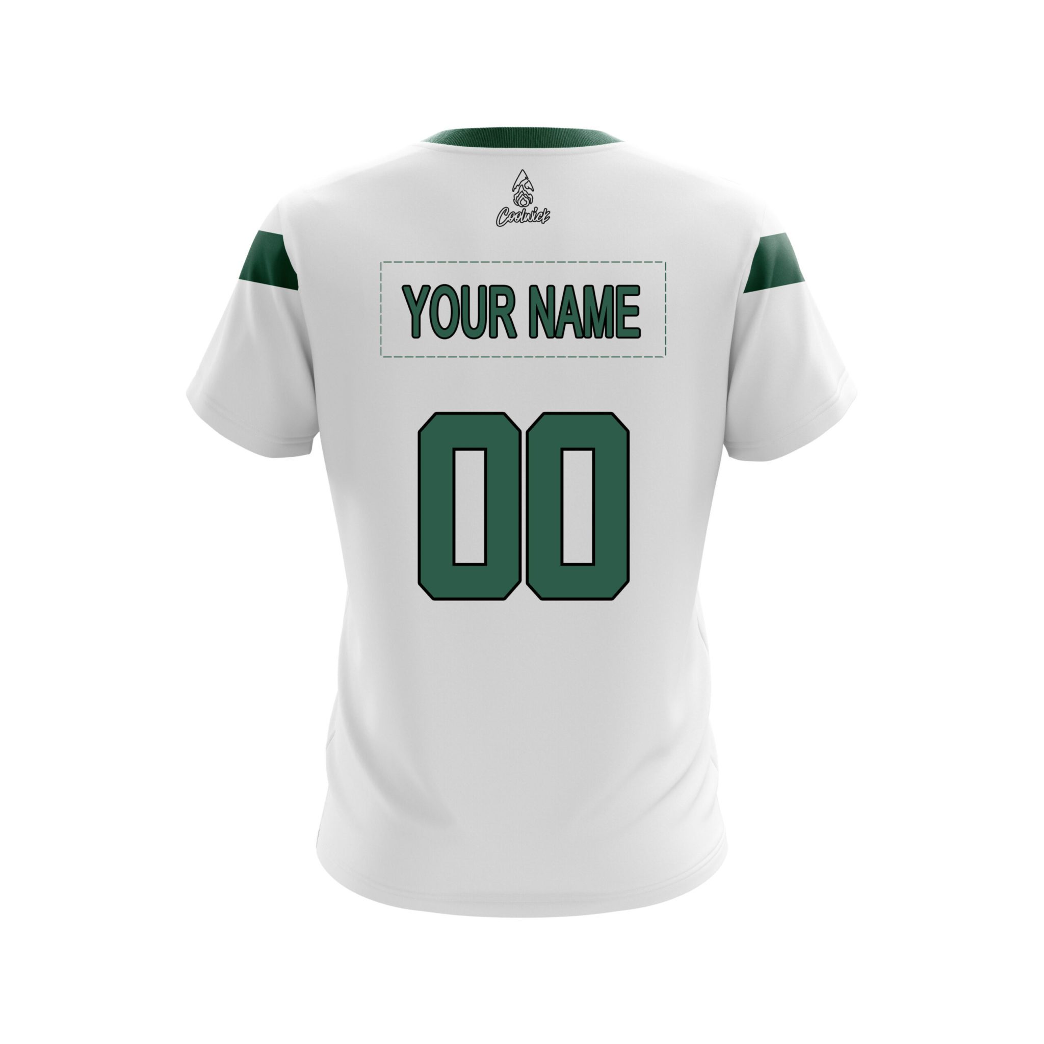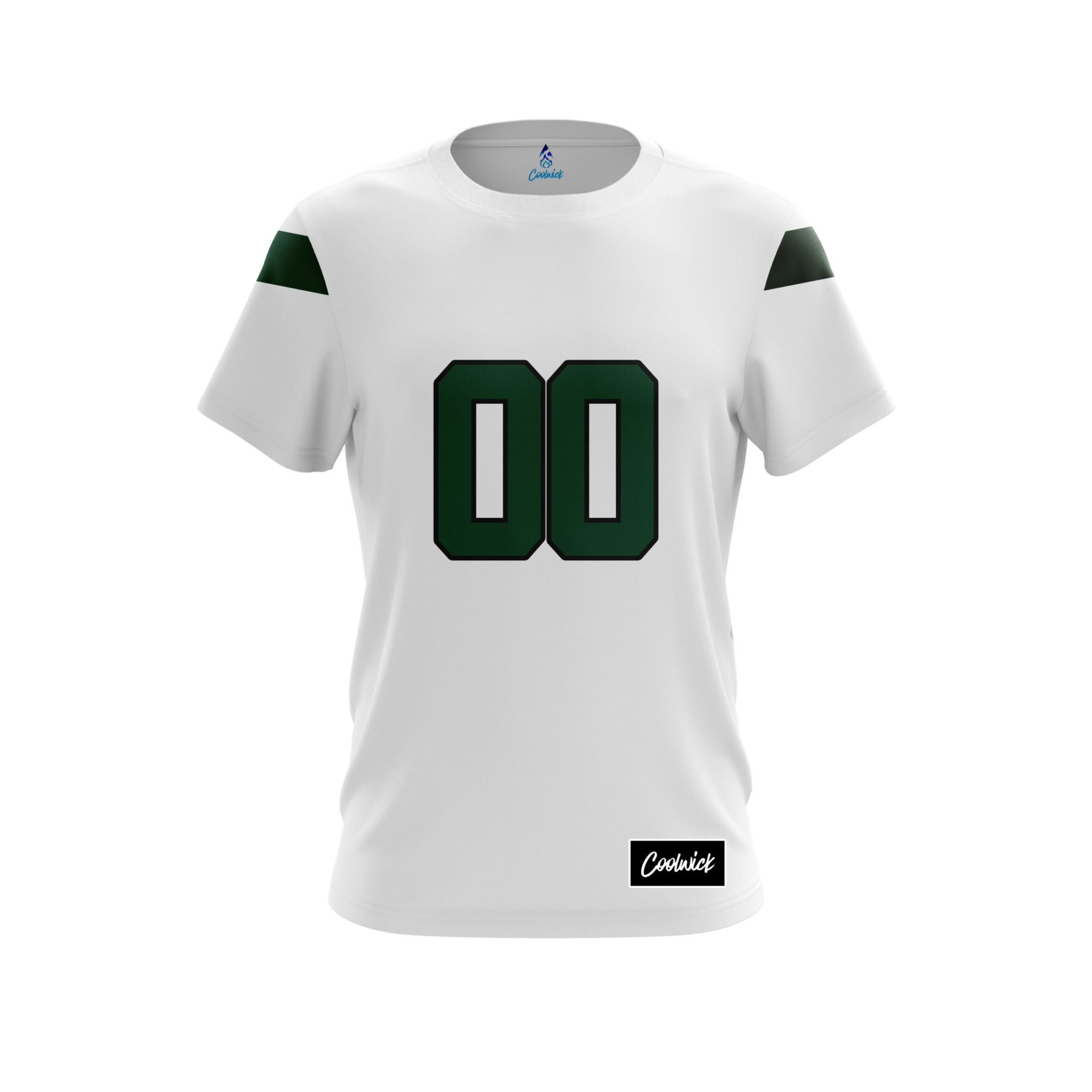 Designed, cut and sewn by hand stay 40% cooler with CoolWick. Our New York Green Away Football CoolWick Bowling Jerseys are made of two different fabrics with the back being our CoolWick technology fabric that helps wick moisture away and helps air flow more easily through the fibers.