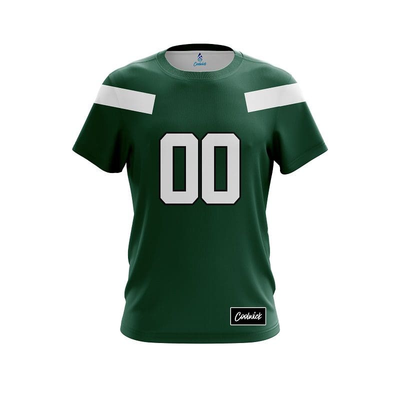 Designed, cut and sewn by hand stay 40% cooler with CoolWick. Our New York Green Football CoolWick Bowling Jerseys are made of two different fabrics with the back being our CoolWick technology fabric that helps wick moisture away and helps air flow more easily through the fibers.