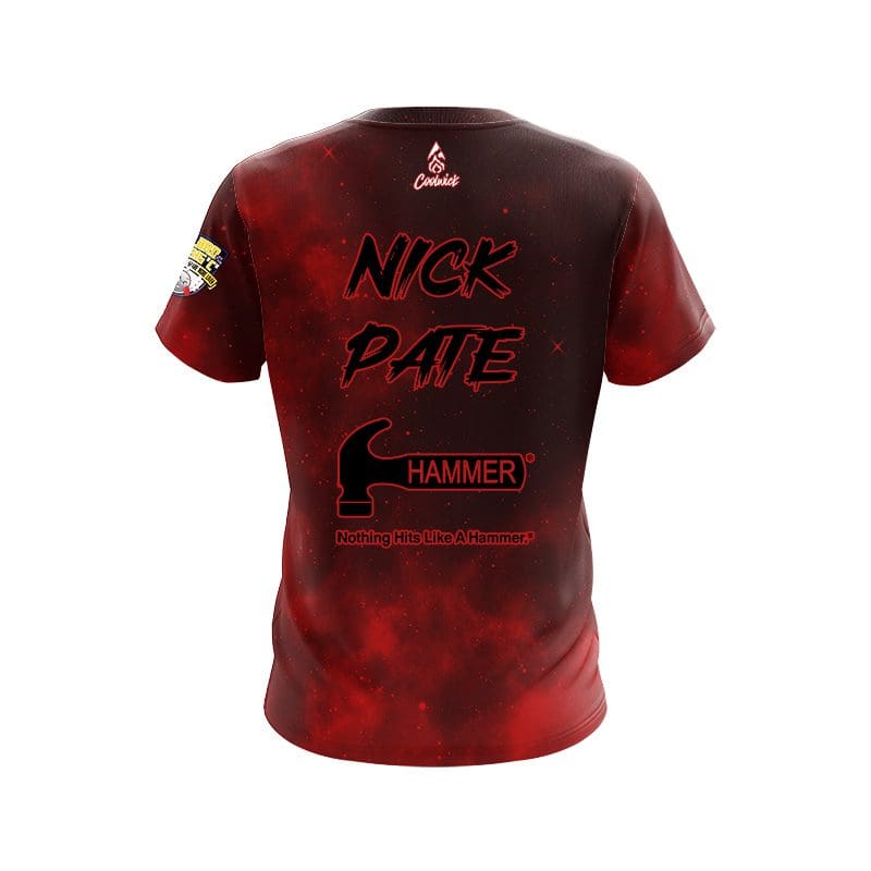 Designed, cut and sewn by hand stay 40% cooler with CoolWick. Our Nick Pate Red Black Galaxy Replica CoolWick Bowling Jerseys are made of two different fabrics. The back being our CoolWick technology fabric that helps wick moisture away and helps air flow more easily through the fibers.