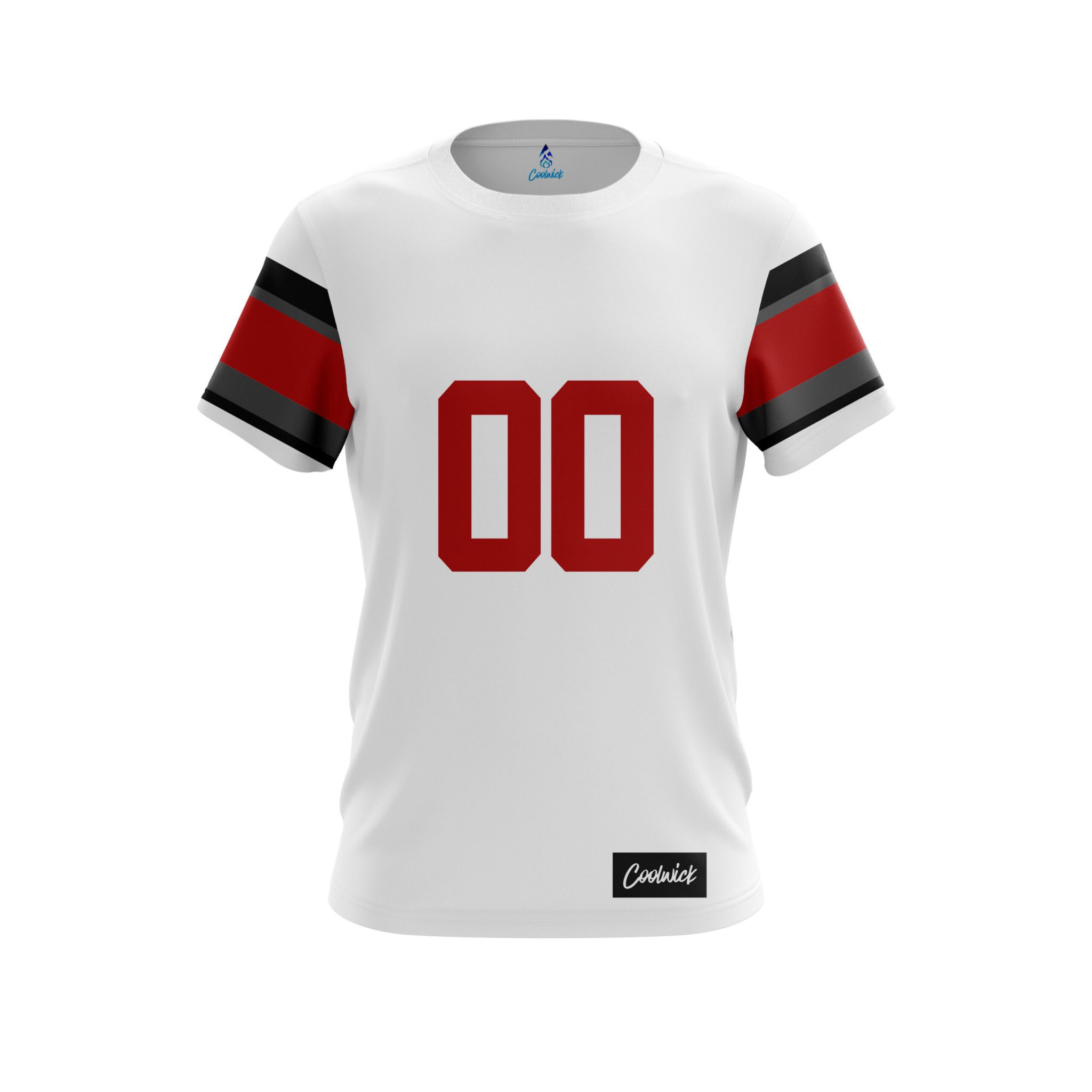 Designed, cut and sewn by hand stay 40% cooler with CoolWick. Our Ohio Away Football CoolWick Bowling Jerseys are made of two different fabrics with the back being our CoolWick technology fabric that helps wick moisture away and helps air flow more easily through the fibers.