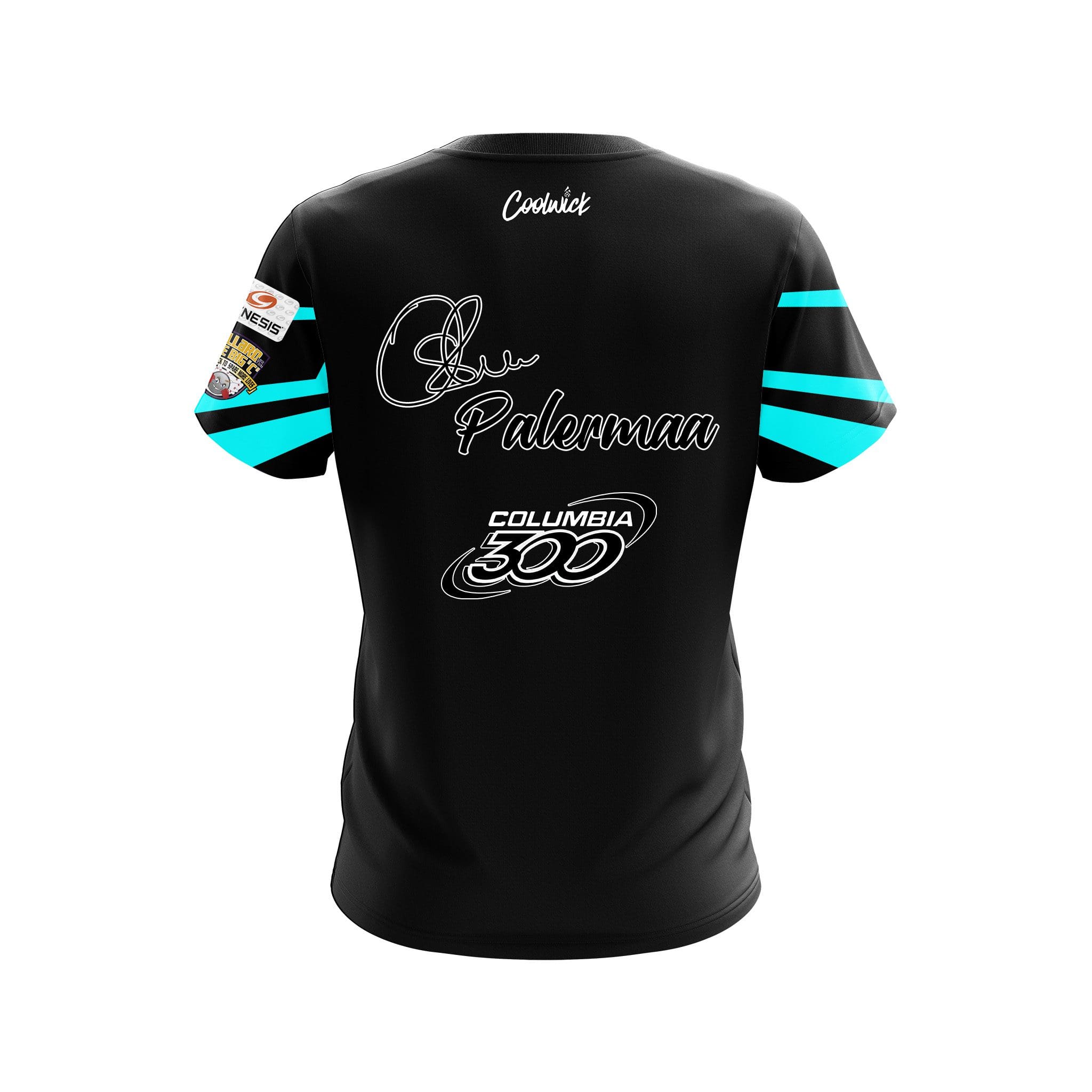 Stay 40% cooler with CoolWick. Our Osku Palermaa Teal Black Suomi CoolWick Bowling Jerseys are made of two different fabrics. The back being our CoolWick technology fabric that helps wick moisture away and helps air flow more easily through the fibers.