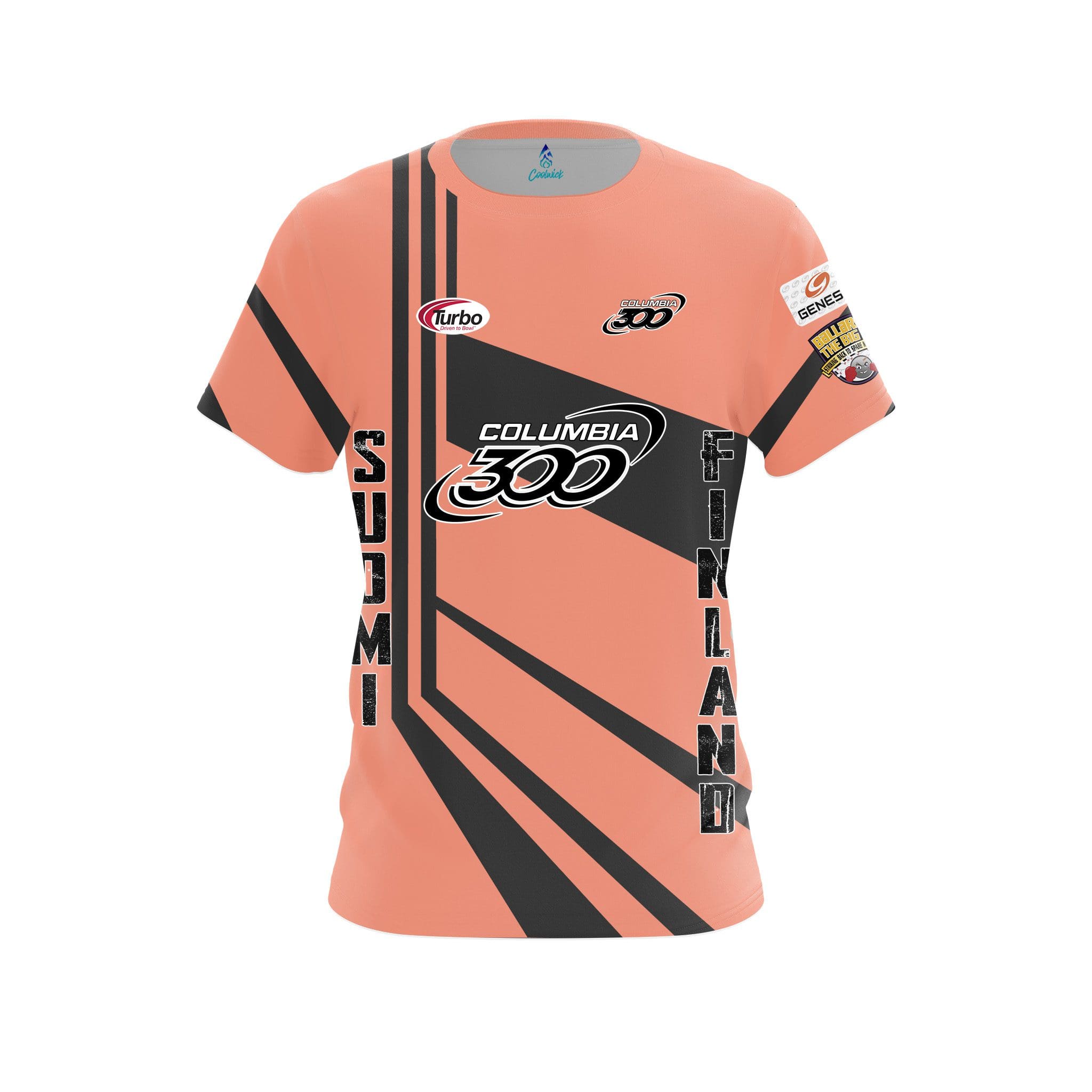 Stay 40% cooler with CoolWick. Our Osku Palermaa Peach Suomi CoolWick Bowling Jerseys are made of two different fabrics. The back being our CoolWick technology fabric that helps wick moisture away and helps air flow more easily through the fibers.