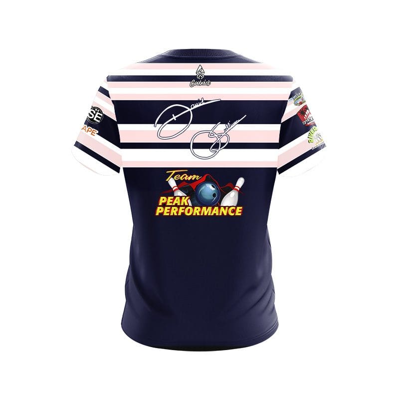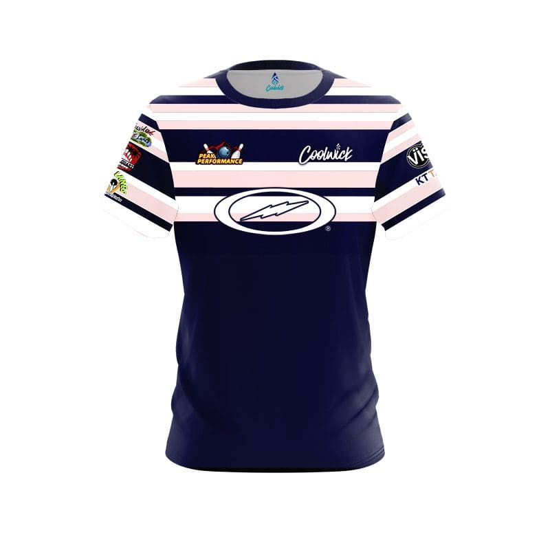 Designed, cut and sewn by hand stay 40% cooler with CoolWick. Our Peak Performance Blue and Pink Stripes Replica CoolWick Bowling Jerseys are made of two different fabrics. The back being our CoolWick technology fabric that helps wick moisture away and helps air flow more easily through the fibers.