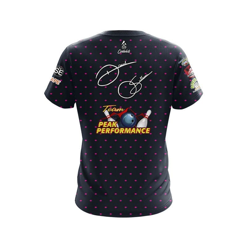 Designed, cut and sewn by hand stay 40% cooler with CoolWick. Our Peak Performance Pink Dots Replica CoolWick Bowling Jerseys are made of two different fabrics. The back being our CoolWick technology fabric that helps wick moisture away and helps air flow more easily through the fibers.