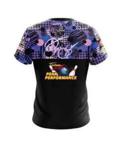 Designed, cut and sewn by hand stay 40% cooler with CoolWick. Our Peak Performance Purple Horizontal Split Replica CoolWick Bowling Jerseys are made of two different fabrics. The back being our CoolWick technology fabric that helps wick moisture away and helps air flow more easily through the fibers.