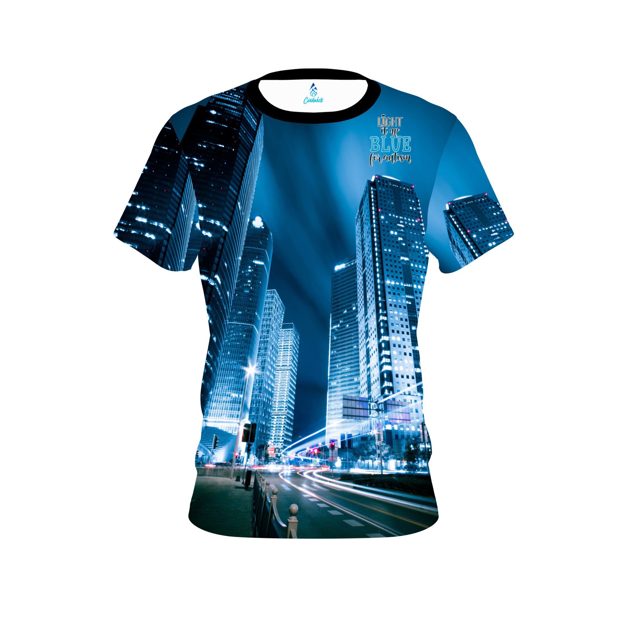 Stay 40% cooler with CoolWick. Our Plain Autism Light It Up Blue Buildings CoolWick Bowling Jerseys are made of two different fabrics with the back being our CoolWick technology fabric that helps wick moisture away and helps air flow more easily through the fibers.