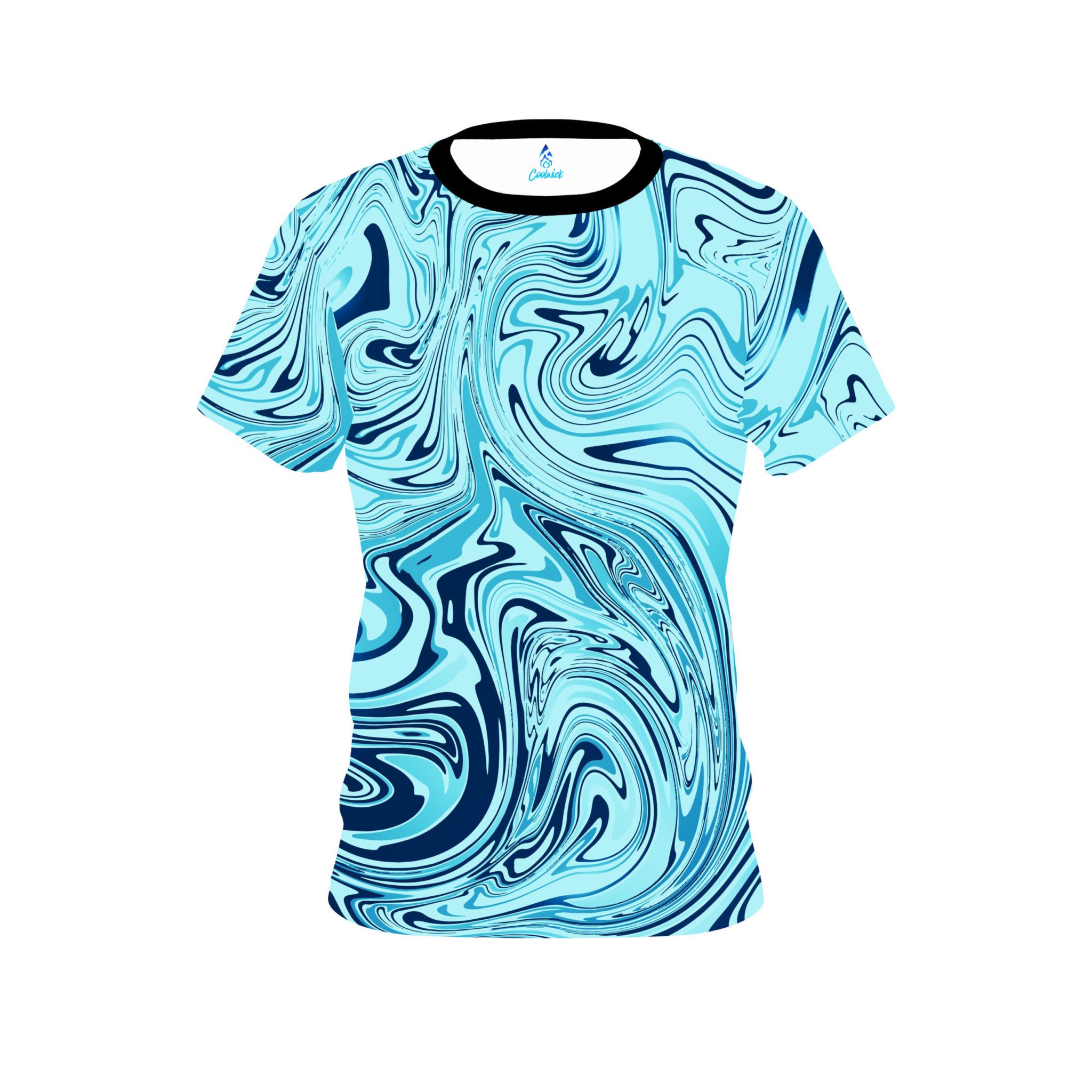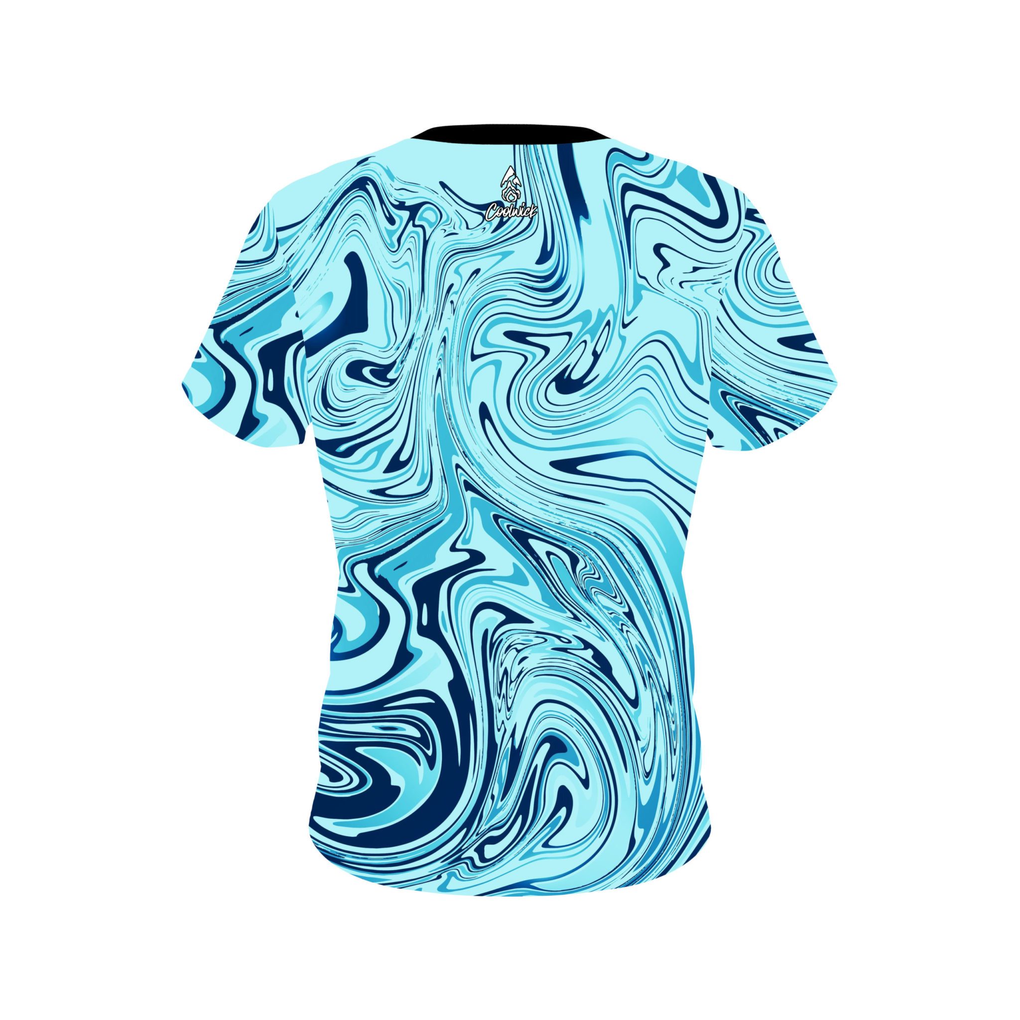 Stay 40% cooler with CoolWick. Our Plain Blue Hallucinate CoolWick Bowling Jerseys are made of two different fabrics with the back being our CoolWick technology fabric that helps wick moisture away and helps air flow more easily through the fibers.