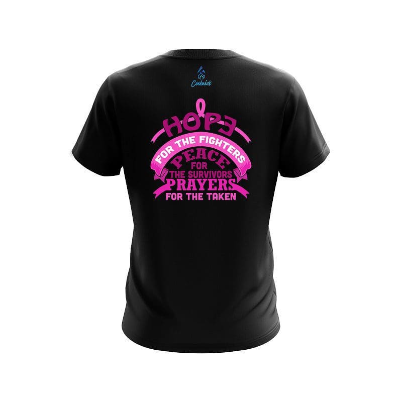 Stay 40% cooler with CoolWick. Our Plain Breast Cancer Hope CoolWick Bowling Jerseys are made of two different fabrics with the back being our CoolWick technology fabric that helps wick moisture away and helps air flow more easily through the fibers.